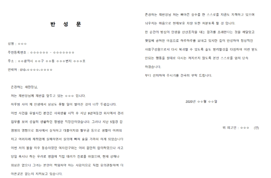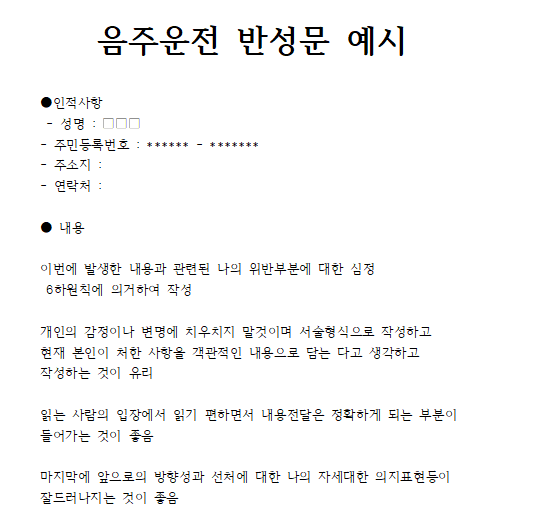 음주운전 반성문